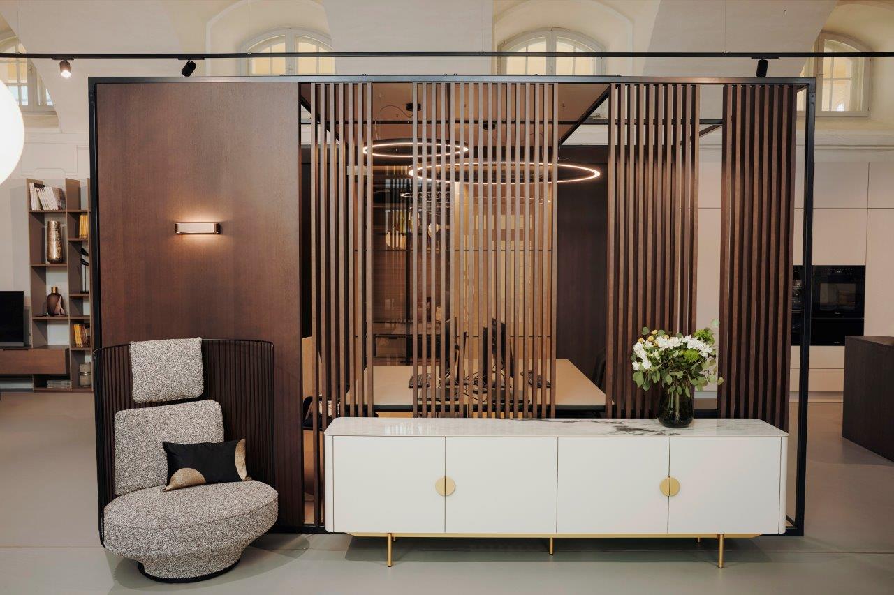 Hierzu wurden Trennelemente und das aufgebaute Musterzimmer entfernt. Der dadurch entstandene Raum mit einer Gesamtgröße von ca. 350 m² wurde durch eine neue Trennwand geteilt. Daraus ergaben sich der Bauabschnitt 1 – das Wohnatelier sowie eine mögliche 2. Betriebseinheit.